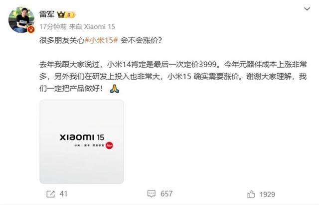 怎么申请皇冠信用网代理_雷军确认小米15会涨价:成本上涨非常多,但一定把产品做好