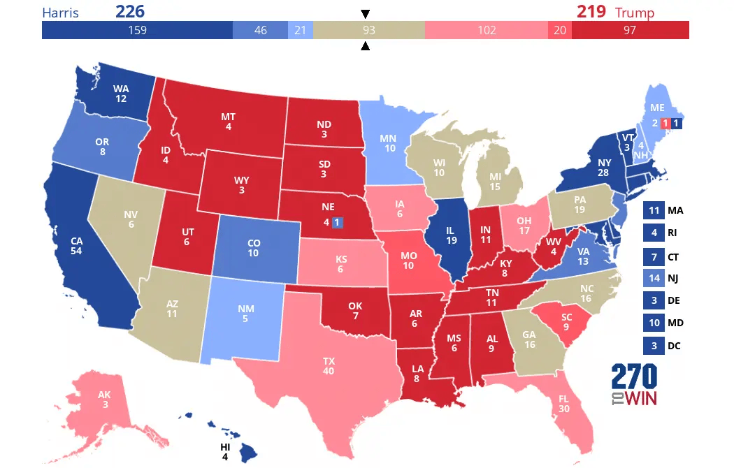 各家媒体将在各州开始计票后不断做出预测皇冠信用网代理申条件。随着各州公布结果,媒体将实时计算选举人票,若哪位候选人率先达到270张选举人票,则可基本确定大选结果。