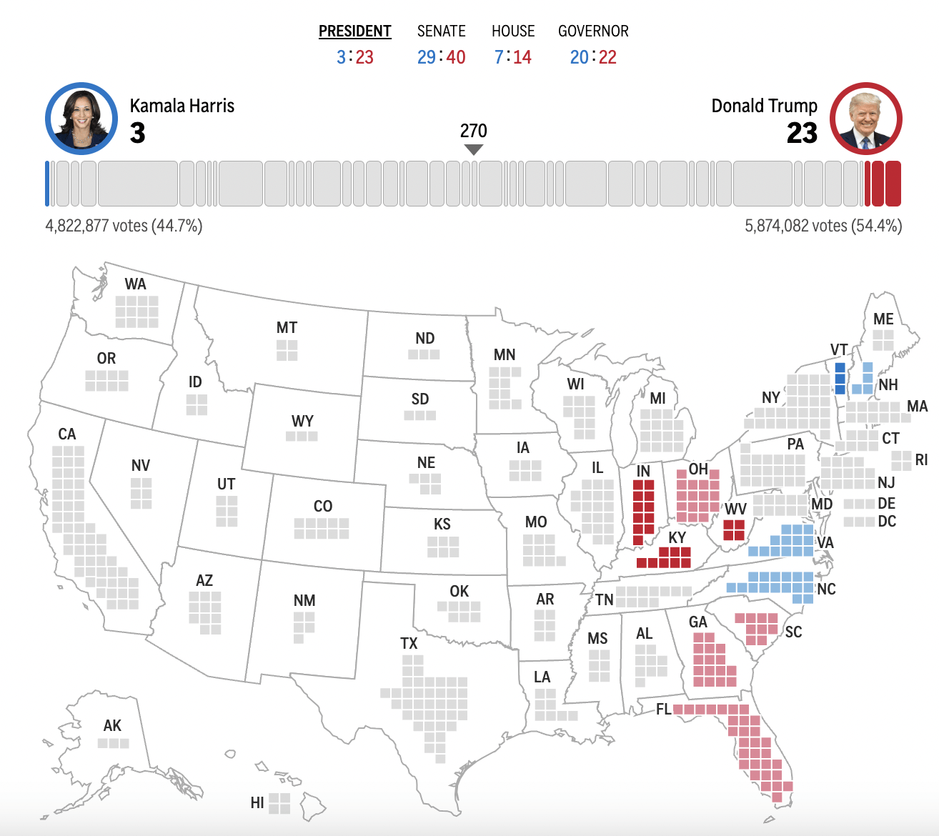 特朗普赢得肯塔基州和印第安纳州皇冠信用网出租,哈里斯赢得佛蒙特州
