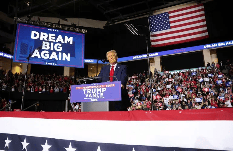 特朗普在宾夕法尼亚州举行集会 回应争议性言论
