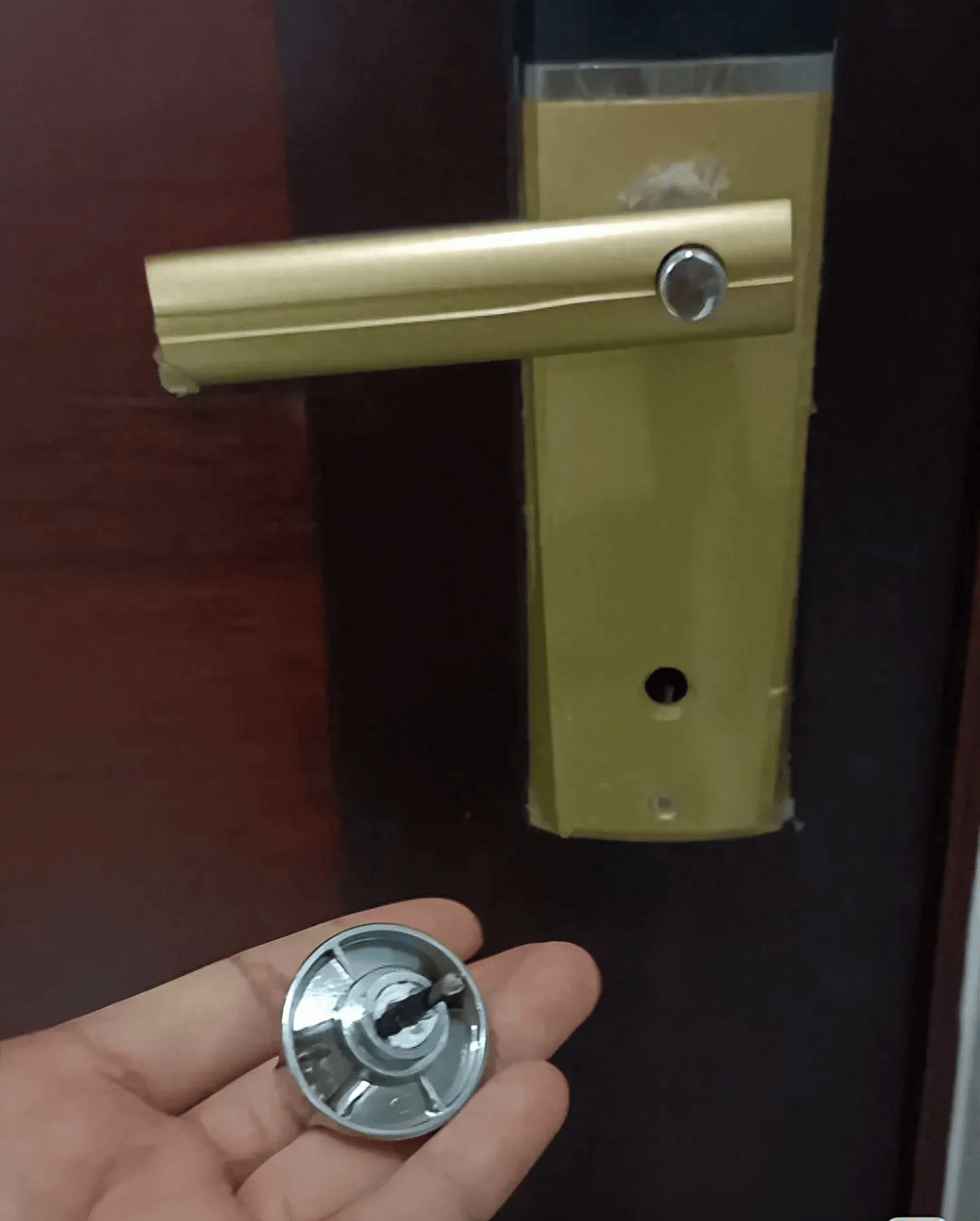 小张称皇冠足球管理平台出租,反锁的锁头扭了一下就断了