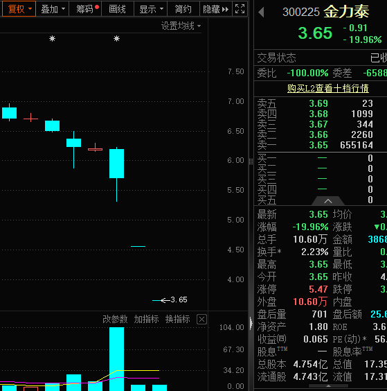 继昨日一字跌停后,金力泰(300225.SZ)今日再度一字跌停,约67.45万手封死跌停板,本周累计大跌近44%,为A股周度跌幅榜首皇冠信用网会员怎么开通 。