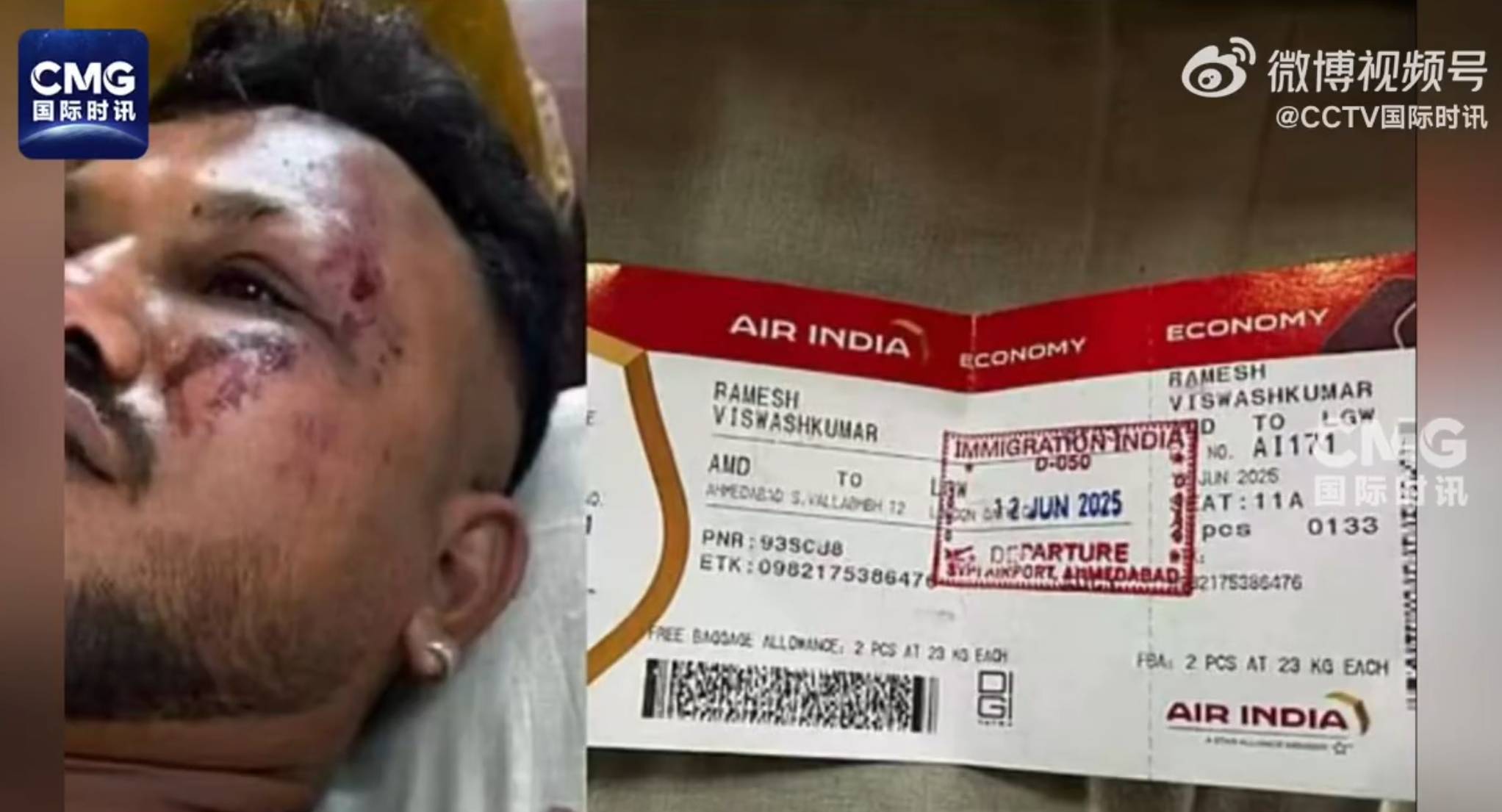 红星新闻报道,该名40岁乘客在印度探亲后准备与哥哥一起返回英国,他的哥哥坐在另一排皇冠信用网正网 。该乘客可走路离开现场,还拿着登机牌,座位是11A,他的胸部、眼睛和脚部受到撞击伤。该乘客回忆:“起飞三十秒后一声巨响,然后飞机坠毁了,一切都发生得太快了。”他说:“我站起来时吓坏了,开始跑,周围都是飞机碎片,有人抓住了我。”