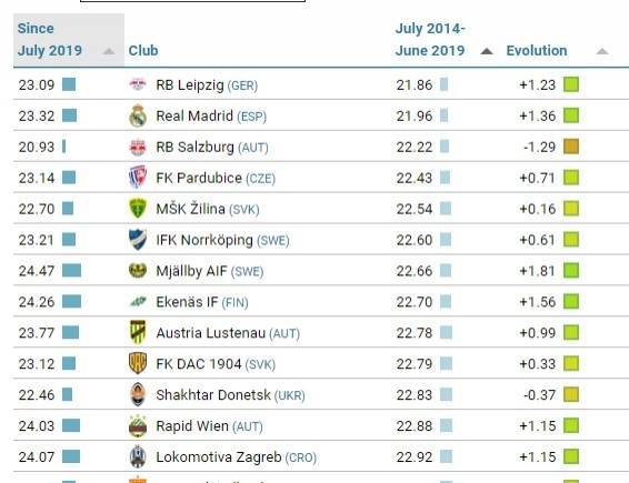 此外,《CIES足球观察周报》还统计了倒数第二个5年期间(2014年7月至2019年6月)俱乐部签约球员平均年龄排名,其中莱比锡以21.86岁排名第一,第二位是皇马的21.96岁,第三位则是萨尔茨堡红牛的22.22岁;此外上海申花以28.15岁的平均引援年龄排名全球倒数第15位,上海海港以27.86岁排名全球倒数第24位萨尔茨堡红牛足球。