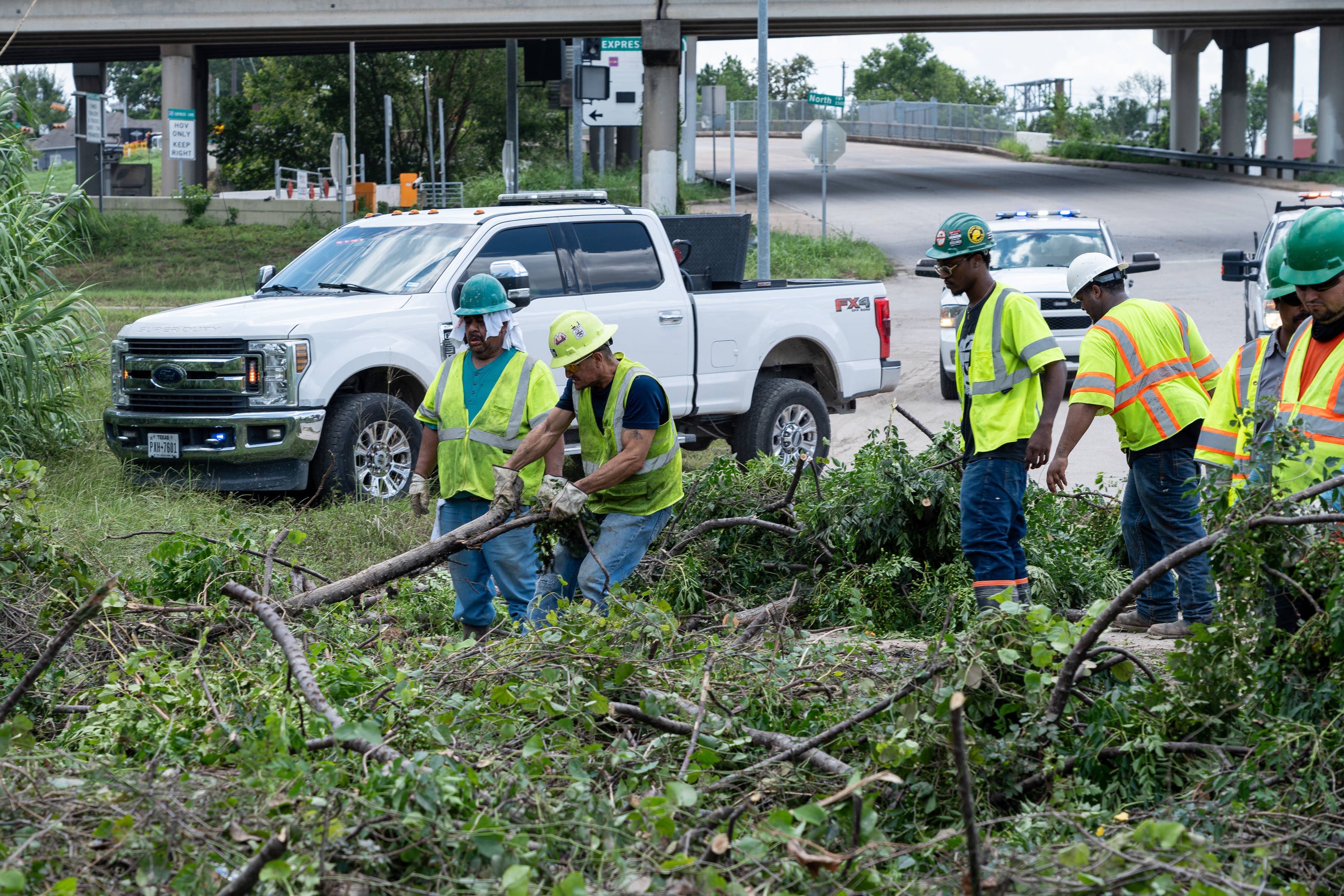 当地时间7月9日,在美国得克萨斯州休斯敦,工人清理公路上的树枝西班牙2:1法国。新华社 图